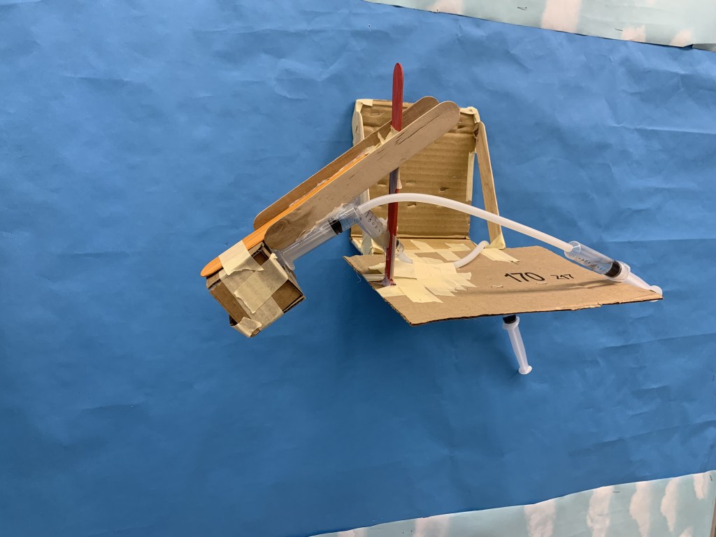 Our grade 8’s were challenged to design and build a hydraulic system that would transport a golf ball 10 centimeters vertically and into a bucket. Students used our Design Process to identify the problem, research, design, build, iterate, and showcase their final solutions.