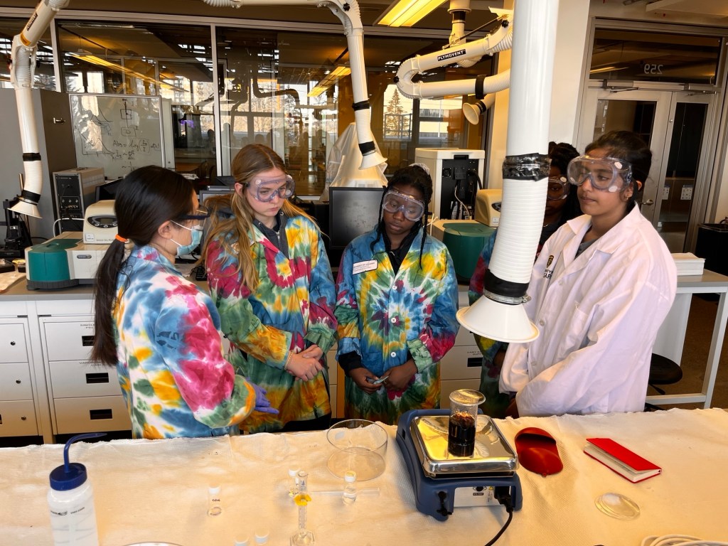 The Nano Science Lab is located in the EEEL (Energy Environment and Experiential Learning) Building at the University of Calgary. Students were able to see the experiential lab spaces while learning about and observing demonstration labs. Our students were gifted 4 vials of Super Paramagnetic Iron Nanoparticles to bring back to the school and to inspire students to continue their learning in this area.