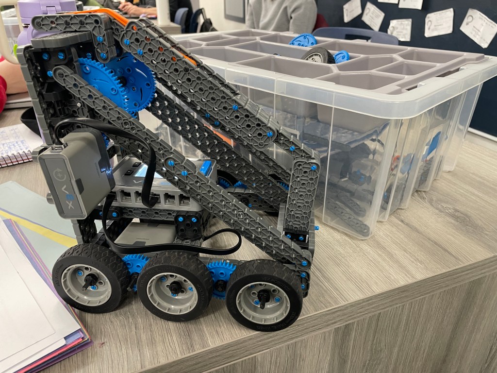 Our Robotics Stem course is wrapping up semester one with the Full Volume Challenge. Students have been working hard for the past few weeks to design, build and iterate their VEX robots to score points on the challenge table.