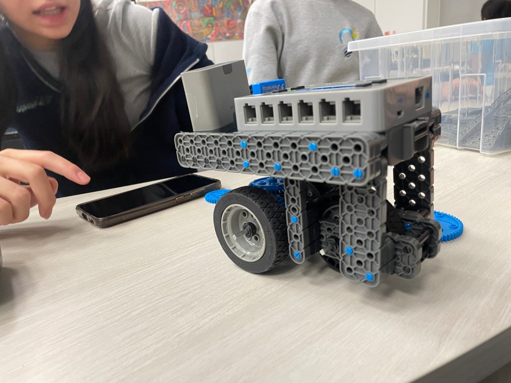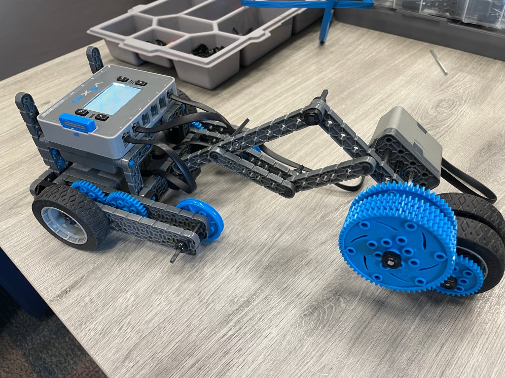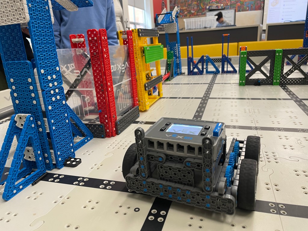 The VEXiq robotics platform serves as an engaging and innovative tool for our grade 8 and 9 students in the Robotics option class, providing them with hands-on experience in engineering and programming. This platform allows students to design, build, and program robots using versatile components and an intuitive block-based coding interface. By exploring concepts such as mechanics, robotics, and automation, students cultivate critical thinking, problem-solving skills, and creativity while collaborating on exciting projects that spark their interest in STEM fields. Through the VEXiq platform, learners not only develop technical skills but also gain valuable teamwork experience as they tackle challenges together, preparing them for future technological advancements.