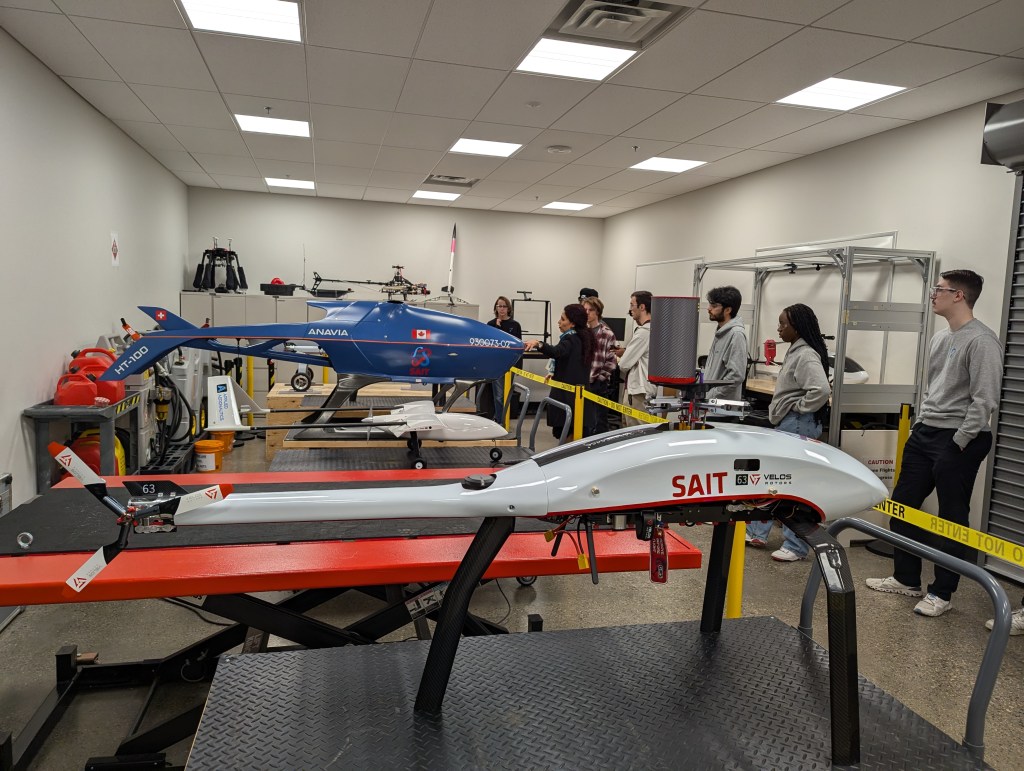 Lastly, students visited the Drone Lab and learned about the different applications and maintenance of drones, as well as the rigorous drone pilot training. Students interacted with lab researchers and learned of research opportunities they could pursue during their post-secondary studies.