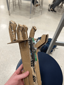 With their patient profiles in mind, students built prosthetic prototypes using simple yet effective materials—clay, cardboard, and hot glue. These hands-on models allowed them to quickly explore different designs, from grip-enhancing tools to adaptive attachments for everyday tasks. By working through the design process, students learned the importance of iteration, problem-solving, and creative thinking in biomedical engineering.
