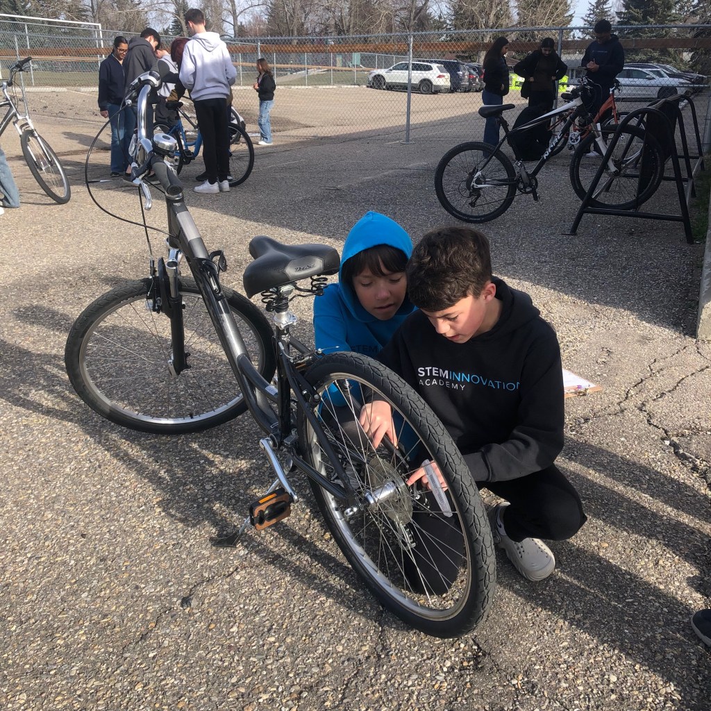 On Thursday April 10, student teams headed to the schoolyard with a bicycle and selected the gear they’ll use for the race. Since the school “hill” differs from the actual race hill—which is steeper and much longer—teams had to make an educated estimate about the best gear choice. Each group has now recorded their optimum gear ratio for next week’s climb, and we’re looking forward to seeing how well their choices perform!