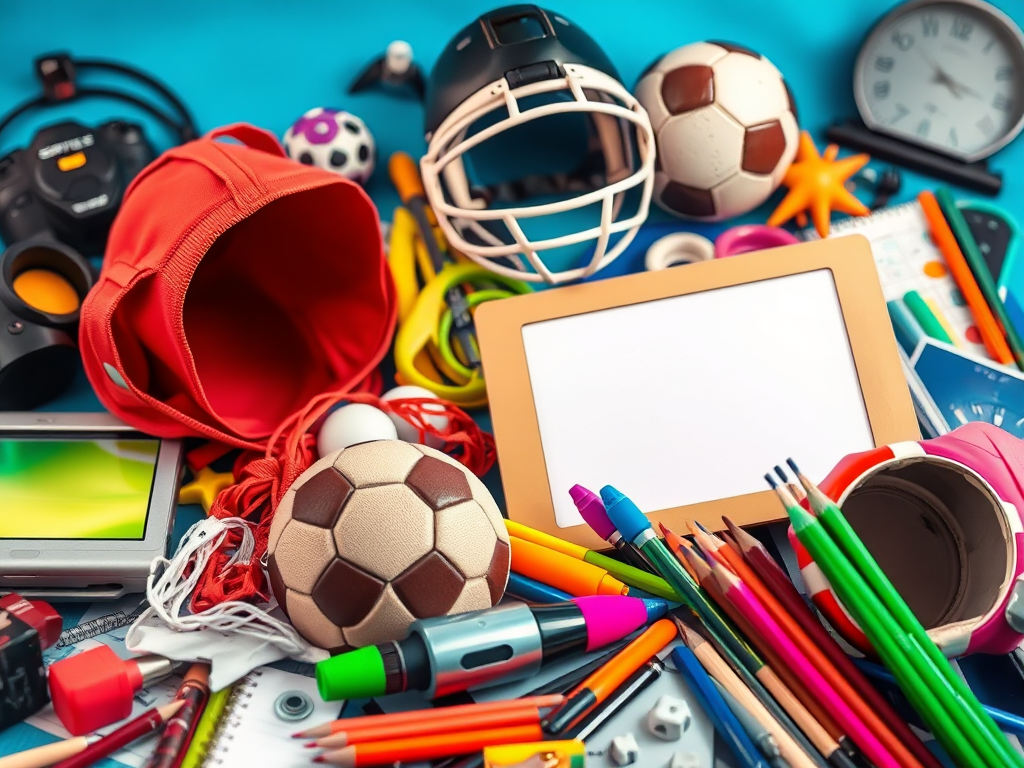 Featured image created with WordPress Ai image generator with the prompt: “Generate a vibrant collage of sports equipment, technology, and art supplies.”