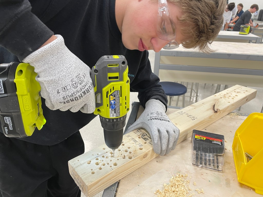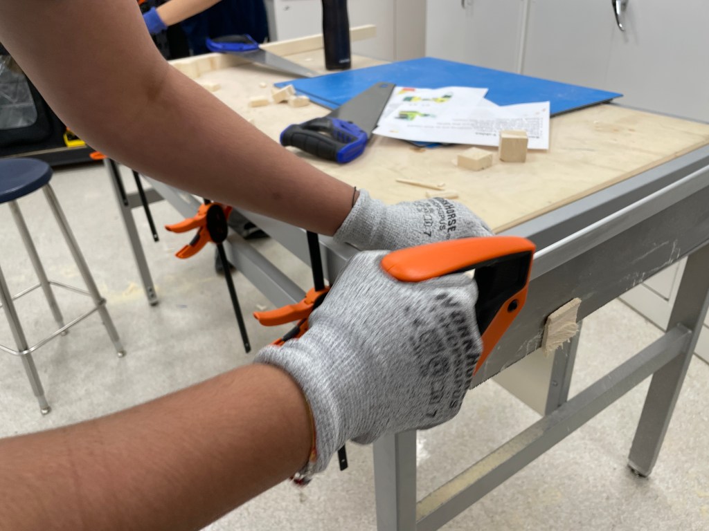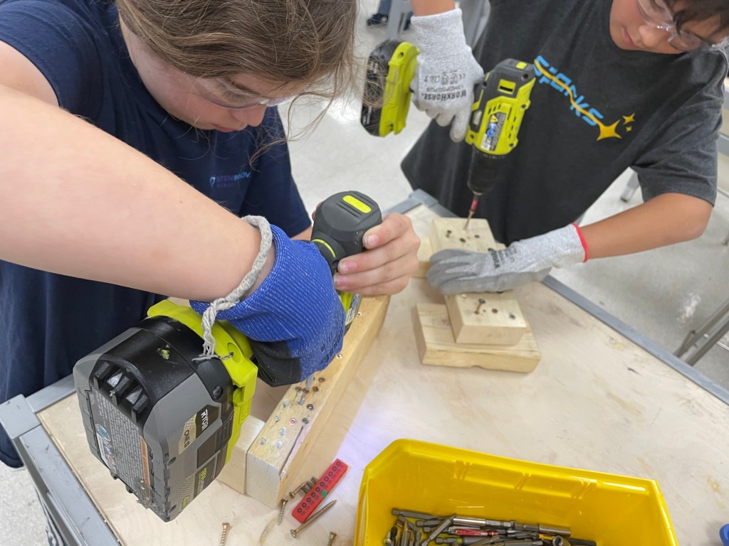 Over the past few weeks, students rotated through six tool stations. Each station introduced a different tool and gave students a chance to practice safe handling and basic skills. The stations included: